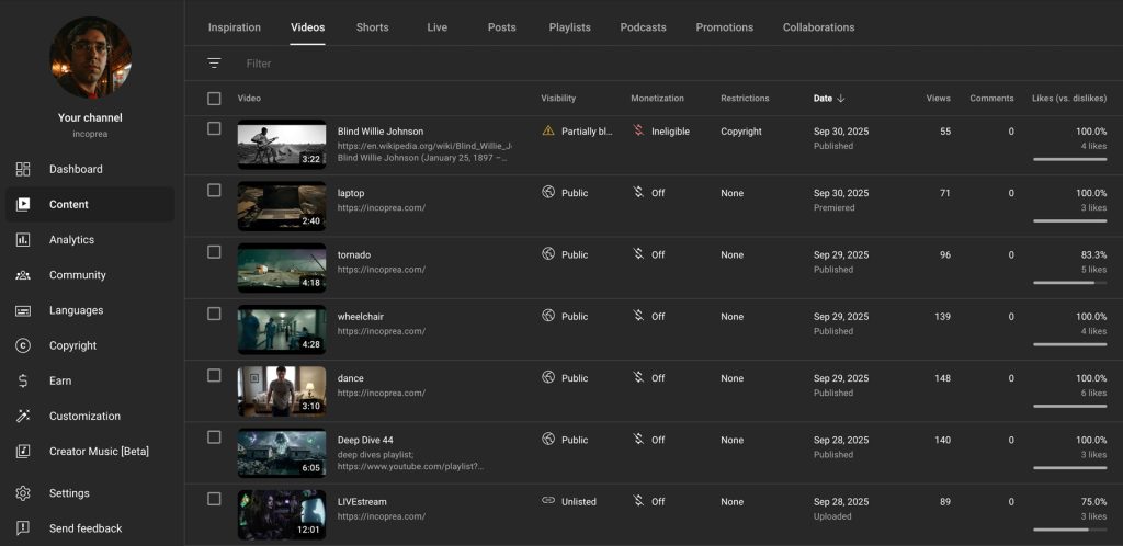 I continue to unlist ‘bury’ my less popular (experimental) work in playlists and links; i.e.